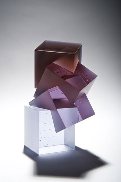 Heike's often precariously balanced sculptures aim to physically engage the viewer becomes toucher - invited by words or form, boldly or guiltily. Colour is an important part of her work; the exploration of the interaction of colour, form and light is solid transparent glass during her PhD reserach has led her to producing her own glass colours, adding metal oxides to the glass batch during the melting process. This enables her to create a personal palette, which consists mostly of subtle tones and polychromatic colours, being colours that change in different types of light. Her work reflects her attraction to movement and transformation, both in colour and form.